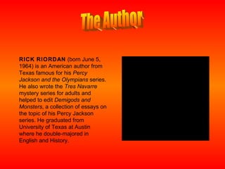 Up to 24 cash back The quest for the Golden Fleece begins. RICK RIORDAN born June 5 1964 is an American author from Texas famous for his Percy Jackson and the Olympians series. While hes in seventh grade like any normal teenager his life is a little different since Percy is a demigod.